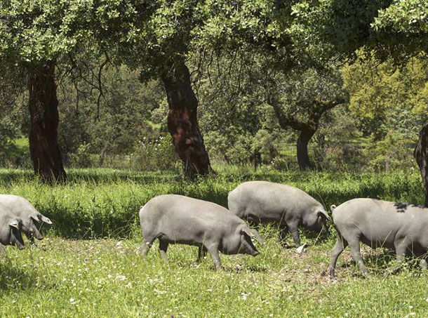 Como valor añadido contamos con la Finca Montecillo, a 10 minutos de Guijuelo, donde se cría parte de nuestra producción de cebo y cebo de campo. En época de montanera, acoge también a una parte de nuestros cerdos de bellota.